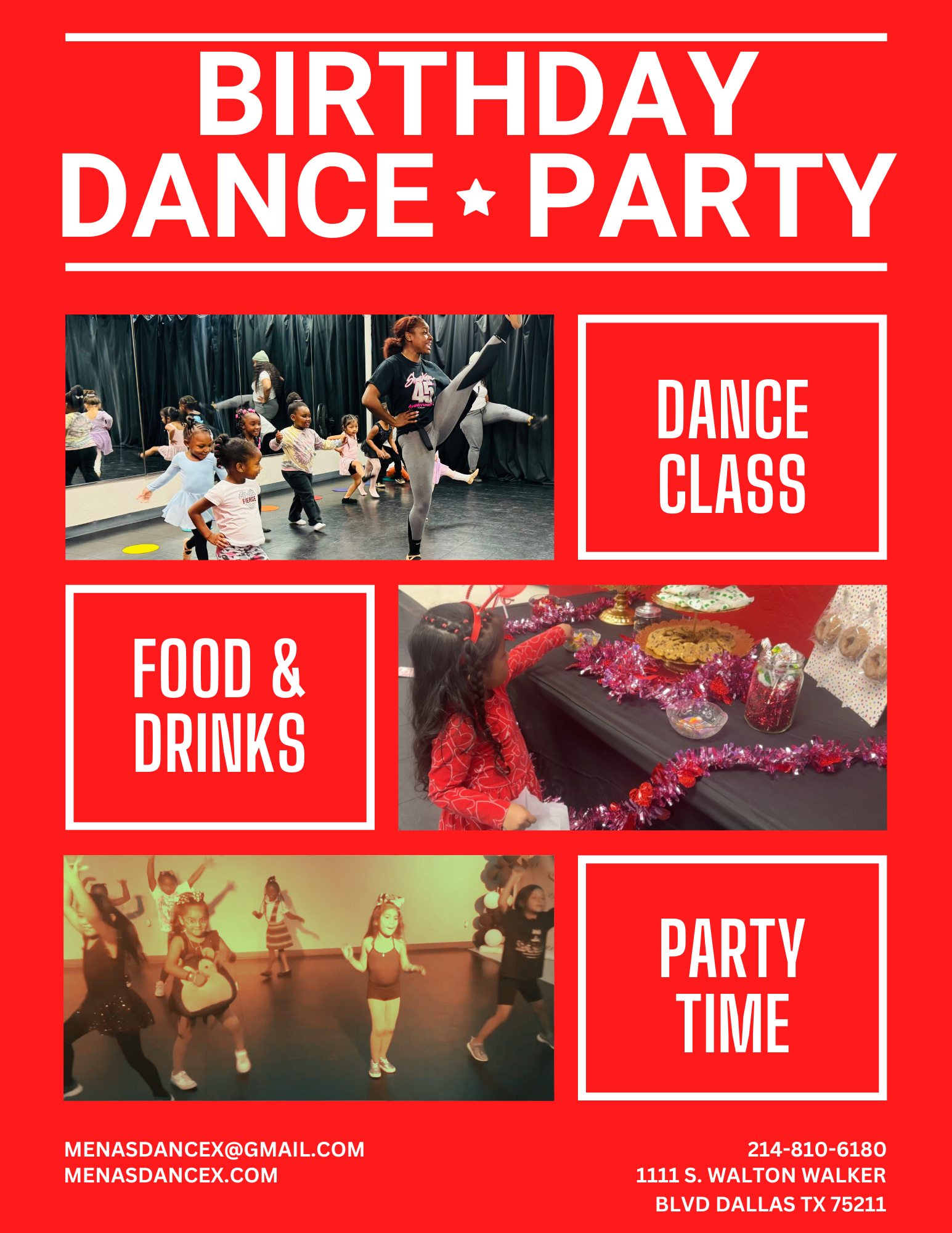 Celebrate your child's special day with a fun-filled birthday dance party at Mena's Dance Xchange with any theme of your choice! Popular themes are princess, pop/rockstar, and hip hop hitters.